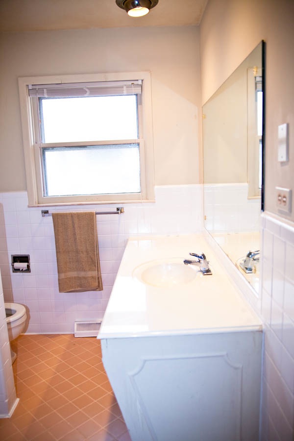 This bathroom has now been updated. I called one of my guys, Green Refinishing, and they got it done. Here's the before: